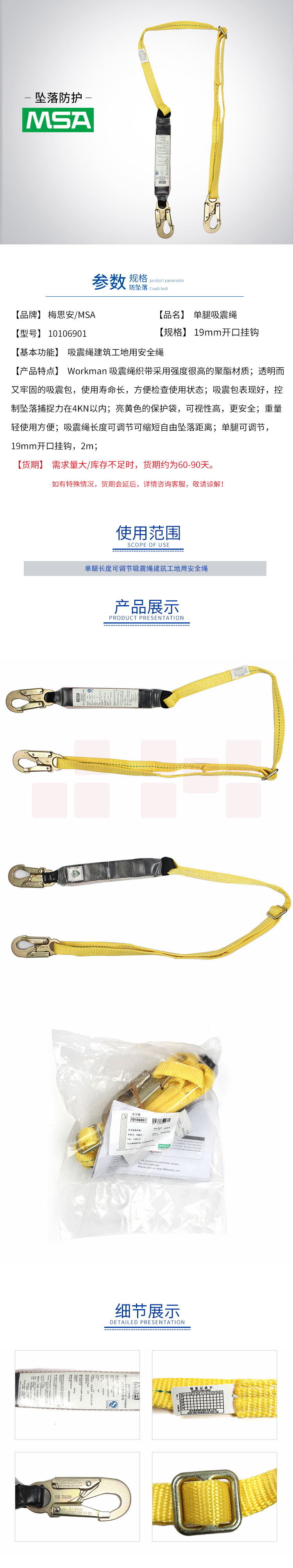 梅思安/MSA 10106901单腿吸震绳 长度可调节 两端均为19mm开口挂钩