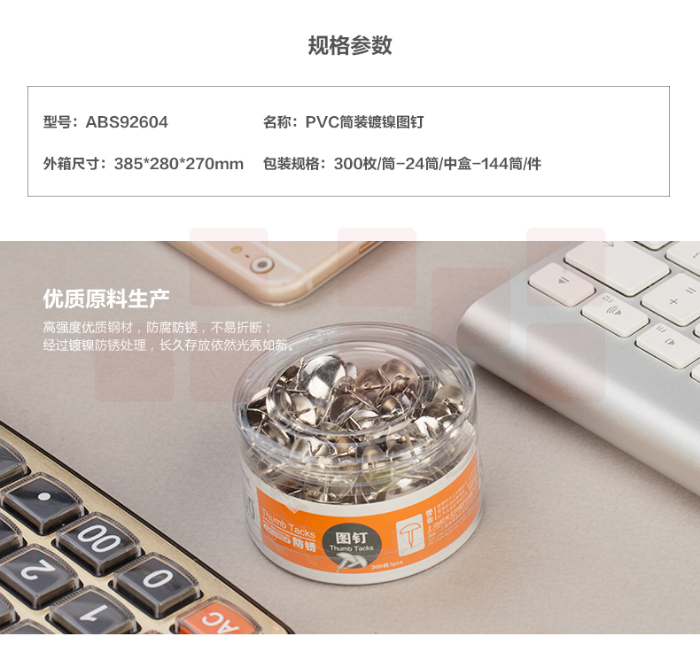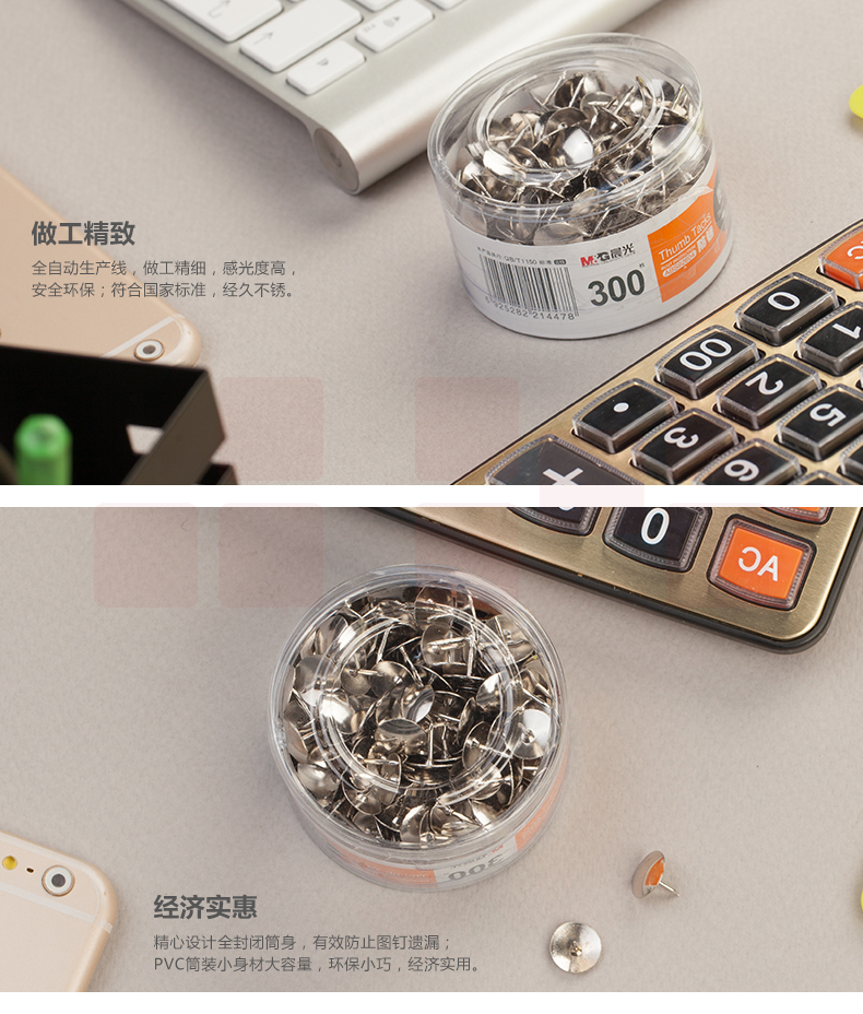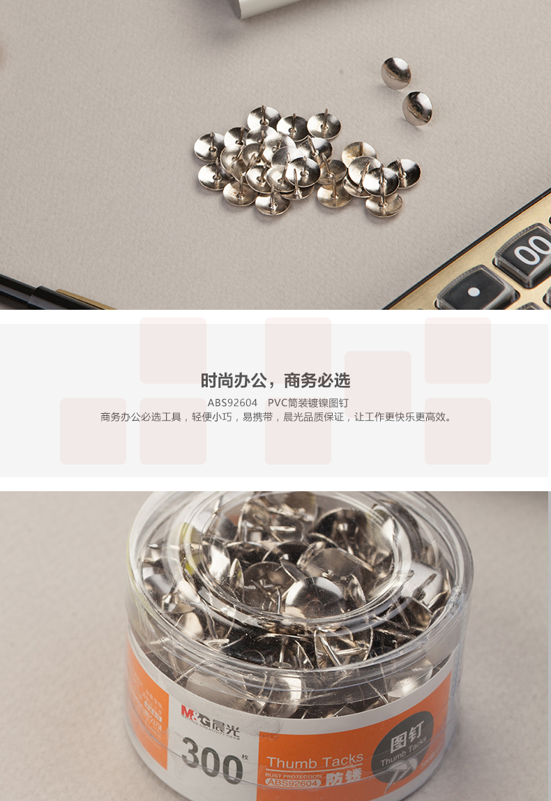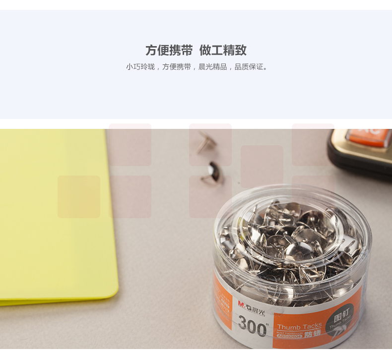 晨光(M&G)防锈图钉PVC盒装金属圆头钉300枚/盒 ABS92604 一包24盒装