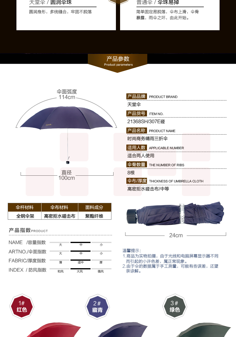 天堂伞 加大商务遮阳伞晴雨伞 伞弧128cm+3311