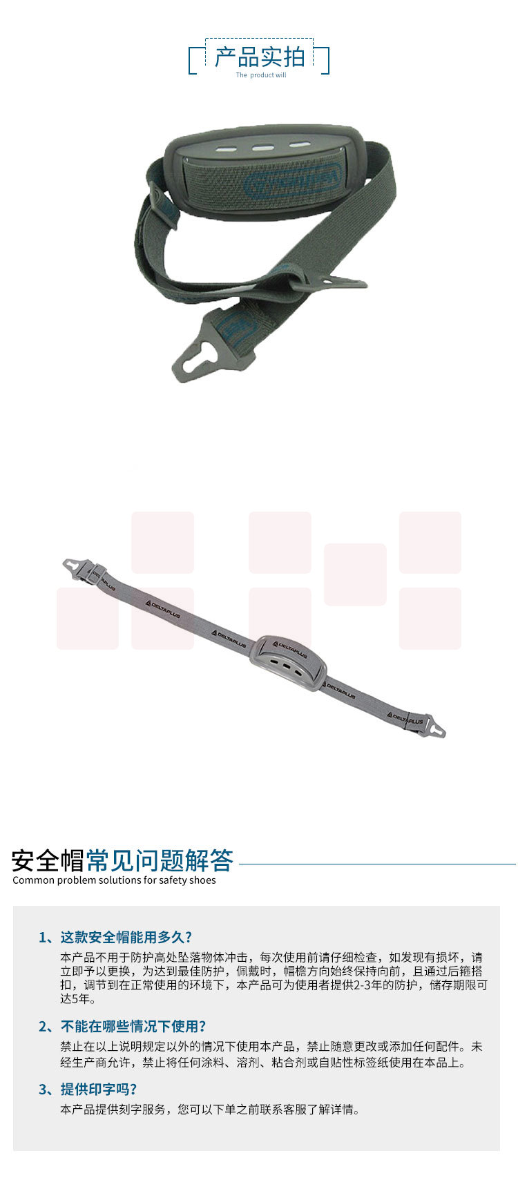 代尔塔 102013 下颚带 可调节 配合代尔塔安全帽使用可 灰色 10个/包