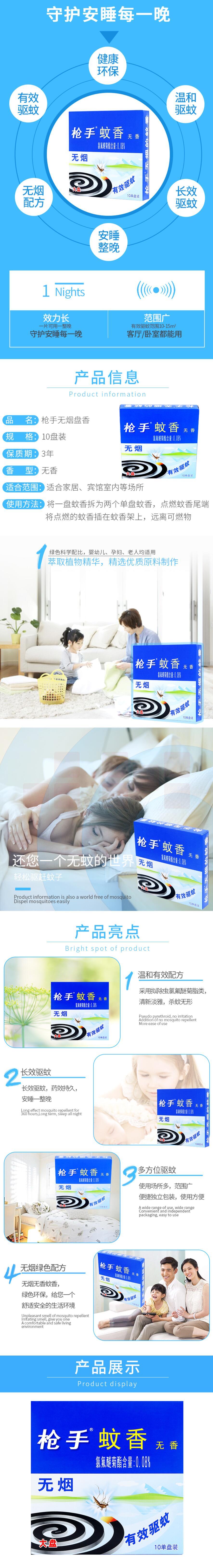 枪手 蚊香 10单盘*3盒 清香型 无烟蚊香大盘香驱蚊杀蚊 3盒
