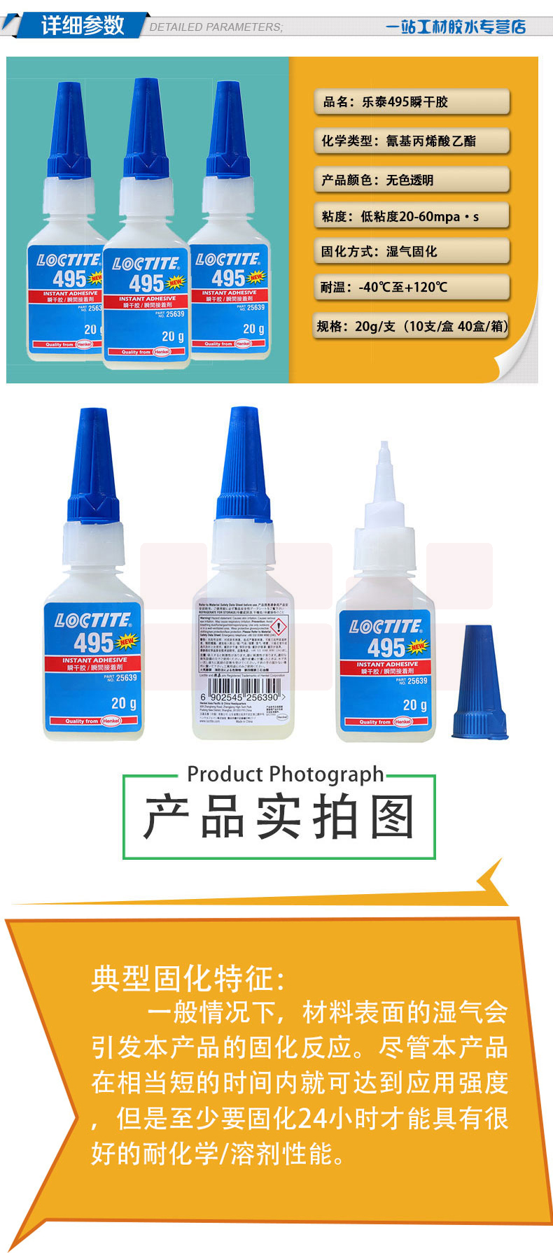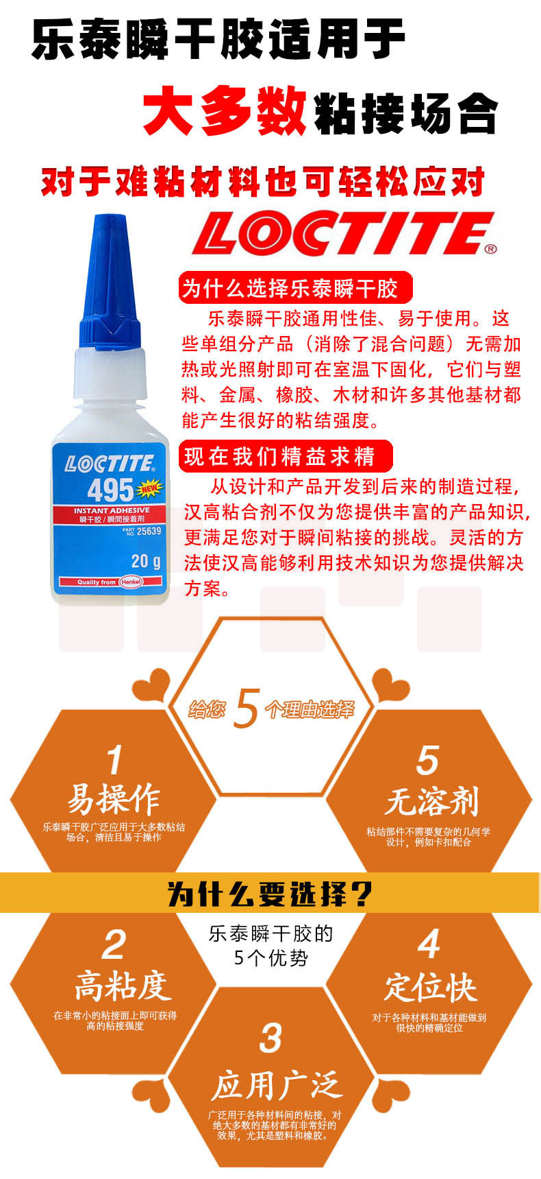 乐泰(LOCTITE)汉高乐泰 Loctite 495 瞬间胶水快干胶速干胶通用型粘金属 20g