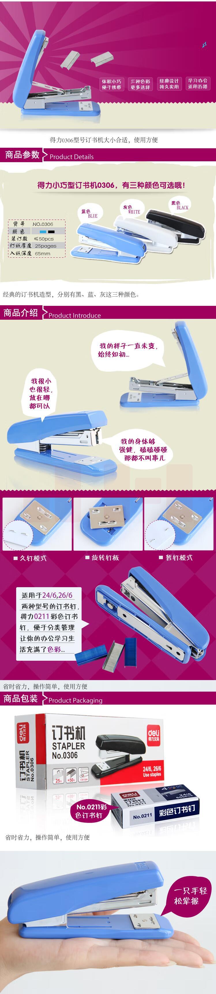 得力(deli) 省力订书机 12号装订机可订20页标准订书器 小巧订书机 0306 黑色