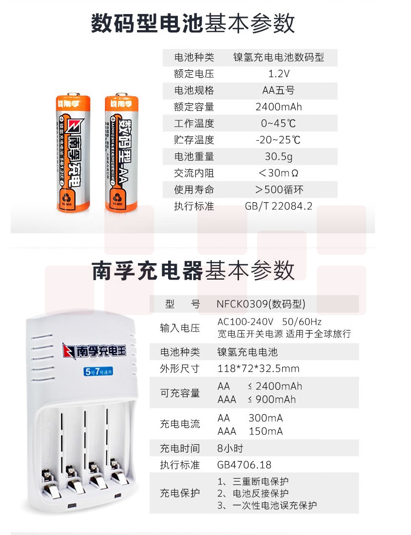 南孚 2400mAh充电套装 含4粒5号电池 货号:LJ