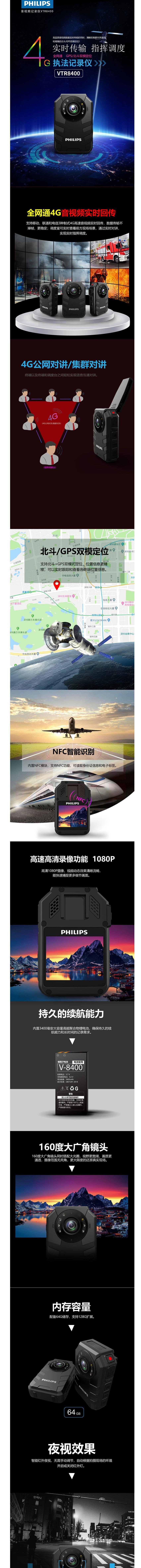 飞利浦 VTR8400(全网通4G) 执法记录仪 标配64G卡 执法取证 便携音视频 货号:WY