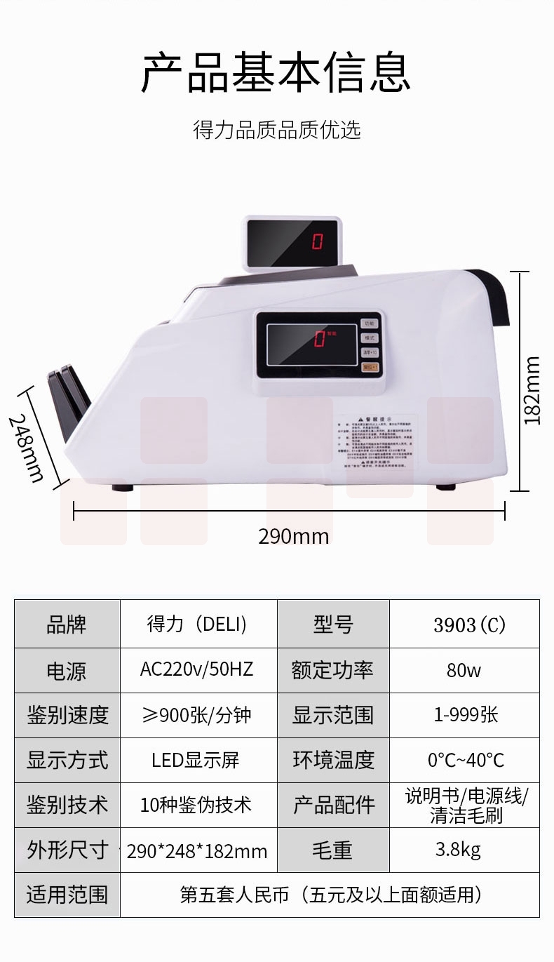 得力 验钞点钞机 双屏语音报警C级3903S 验钞机