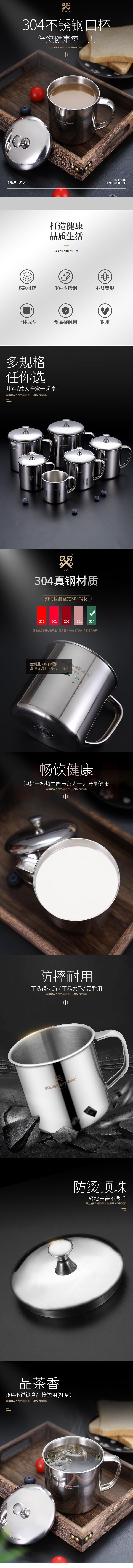 金钥匙 304不锈钢 儿童水杯幼儿园口杯防摔带手柄茶杯(儿童款无盖) GK-KB70