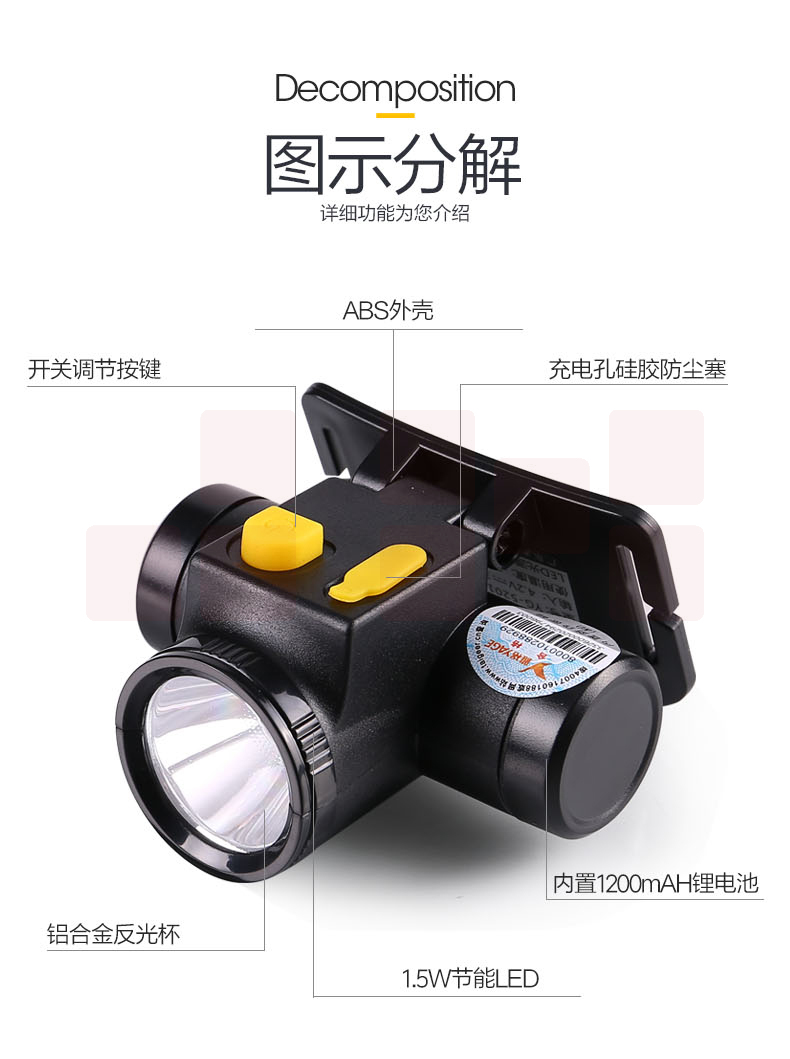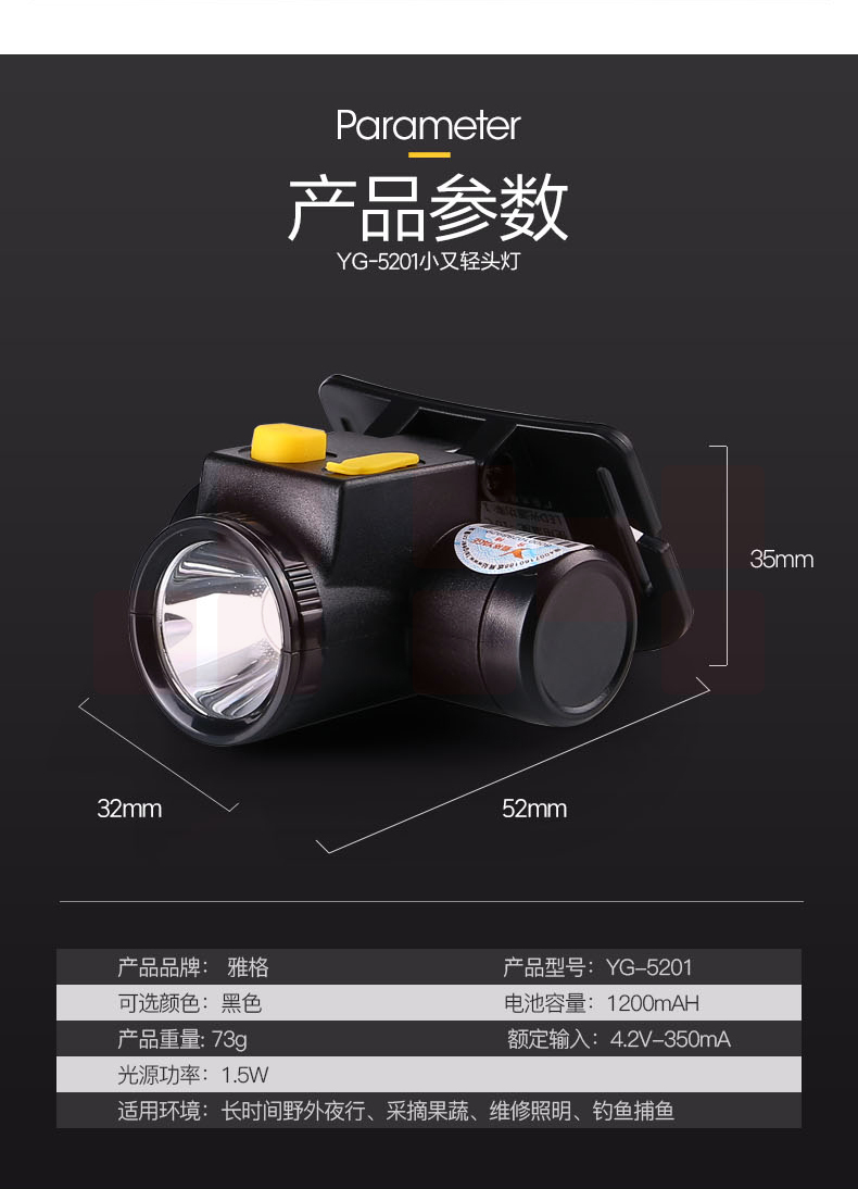 雅格 YG-5201头灯充电LED变焦锂电 头戴灯