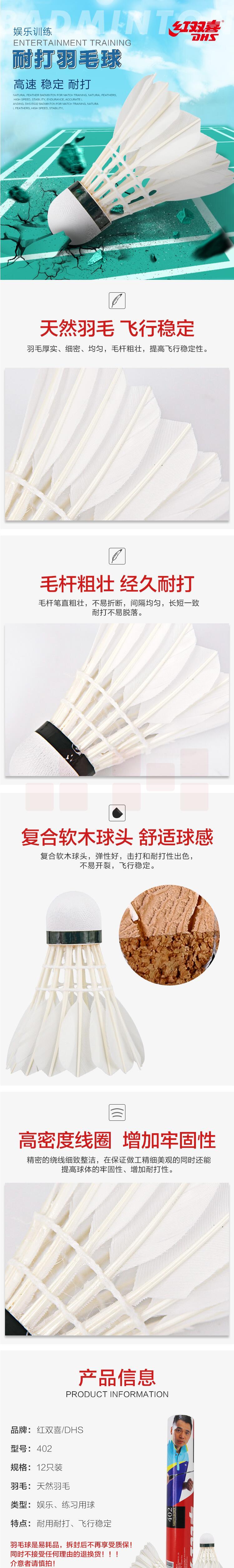 红双喜(DHS)羽毛球12只装飞行稳定训练比赛娱乐用耐打羽球402A
