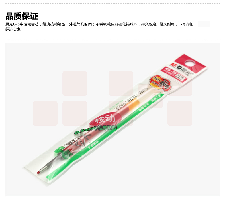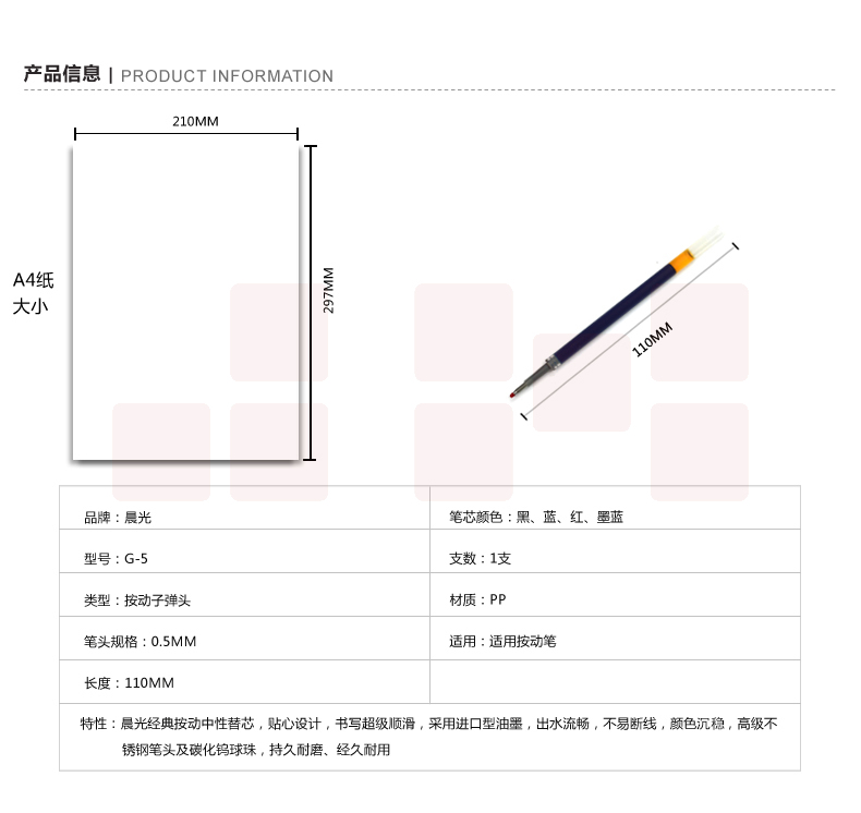 晨光 中性替芯G-5墨蓝 0.5mm按动子弹头中性笔芯 签字笔替芯水笔芯 K35/S01/S08适用 20支/盒