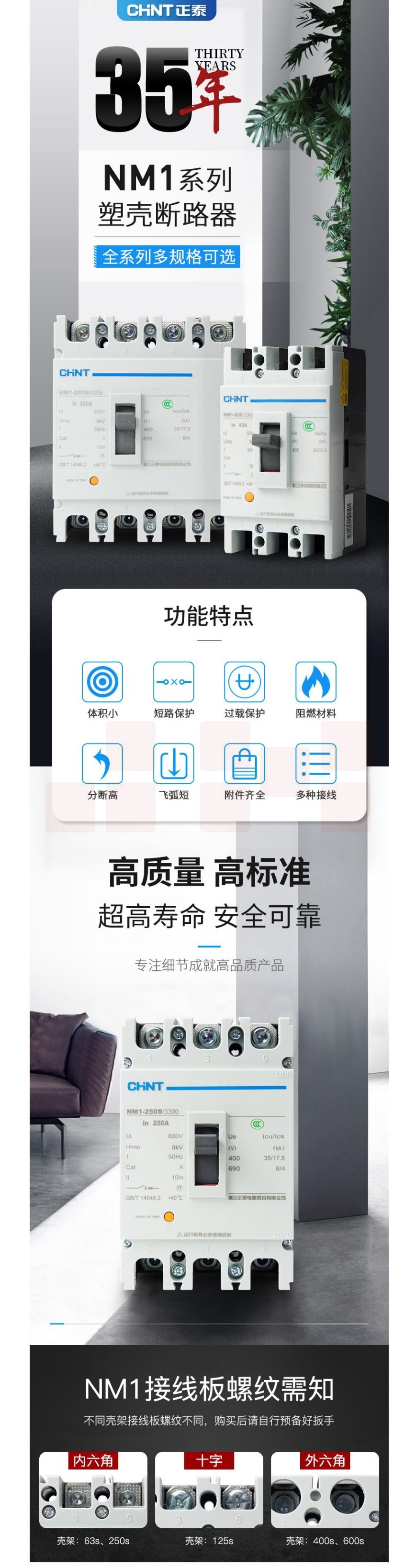 正泰(CHNT)NM1-250H/3300-200A 塑壳断路器 三相3P空气开关 过载短路保护器 货号:JC