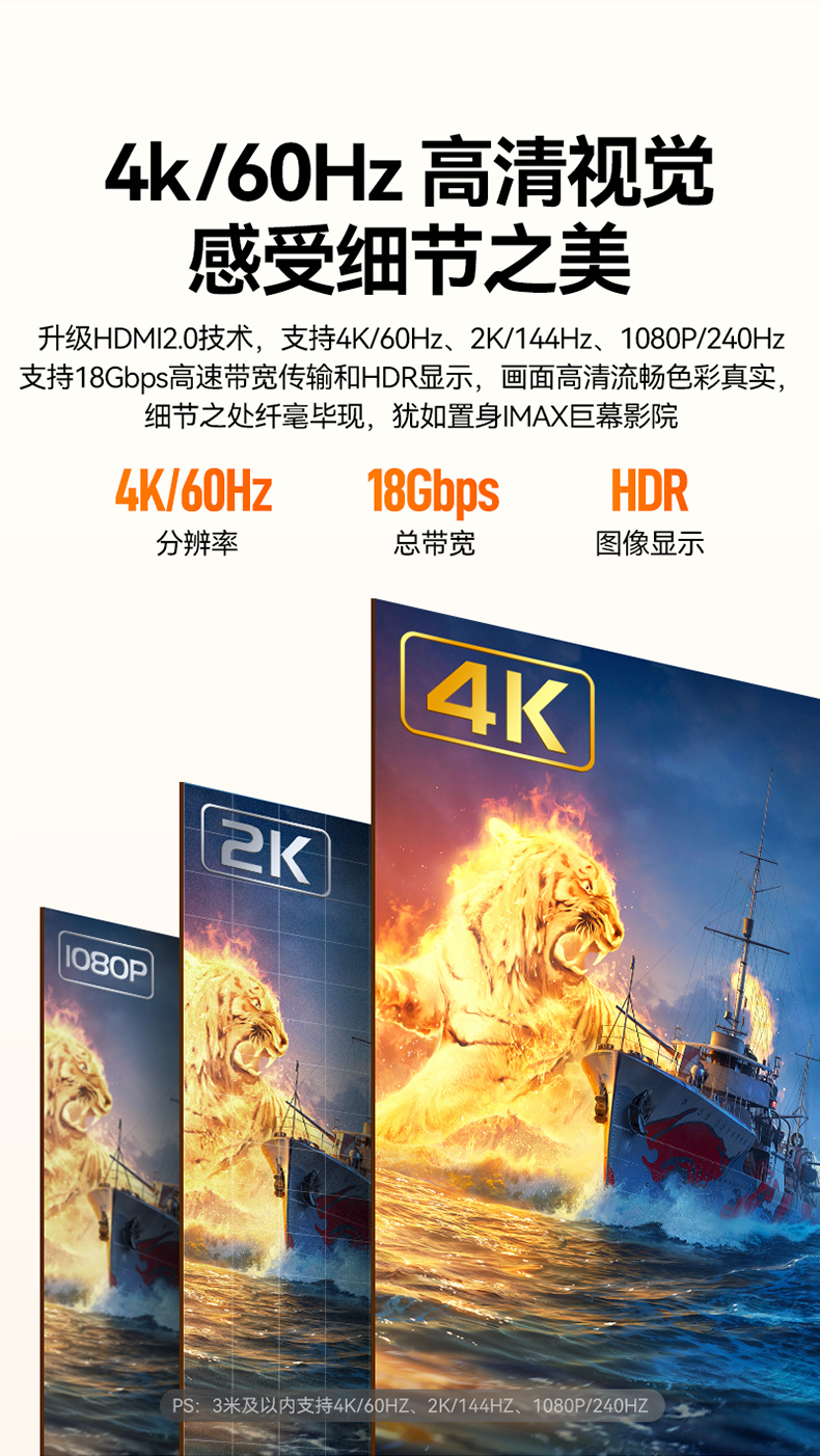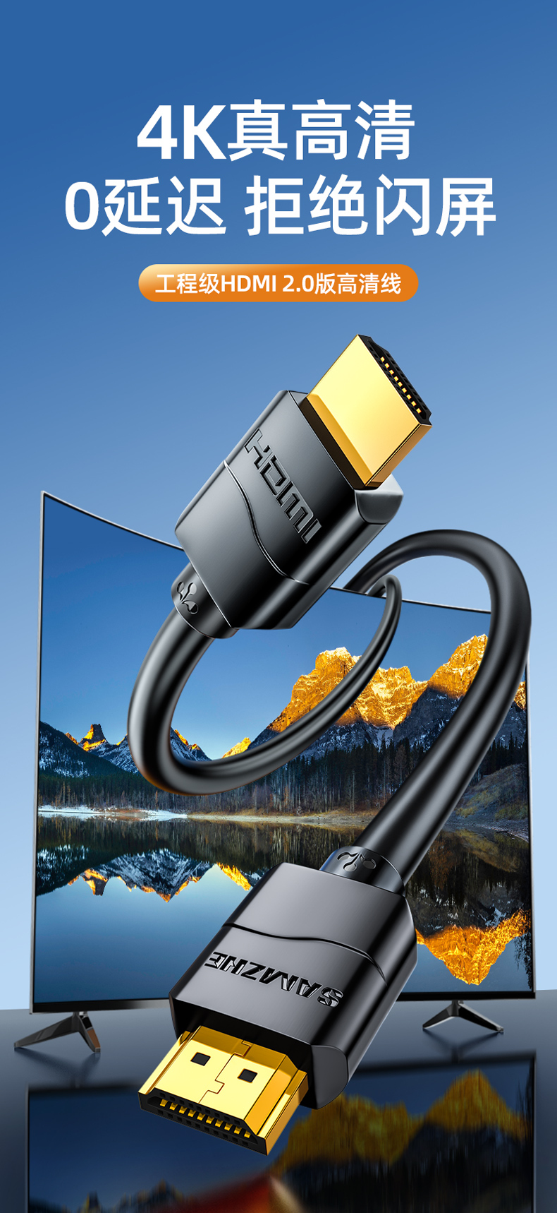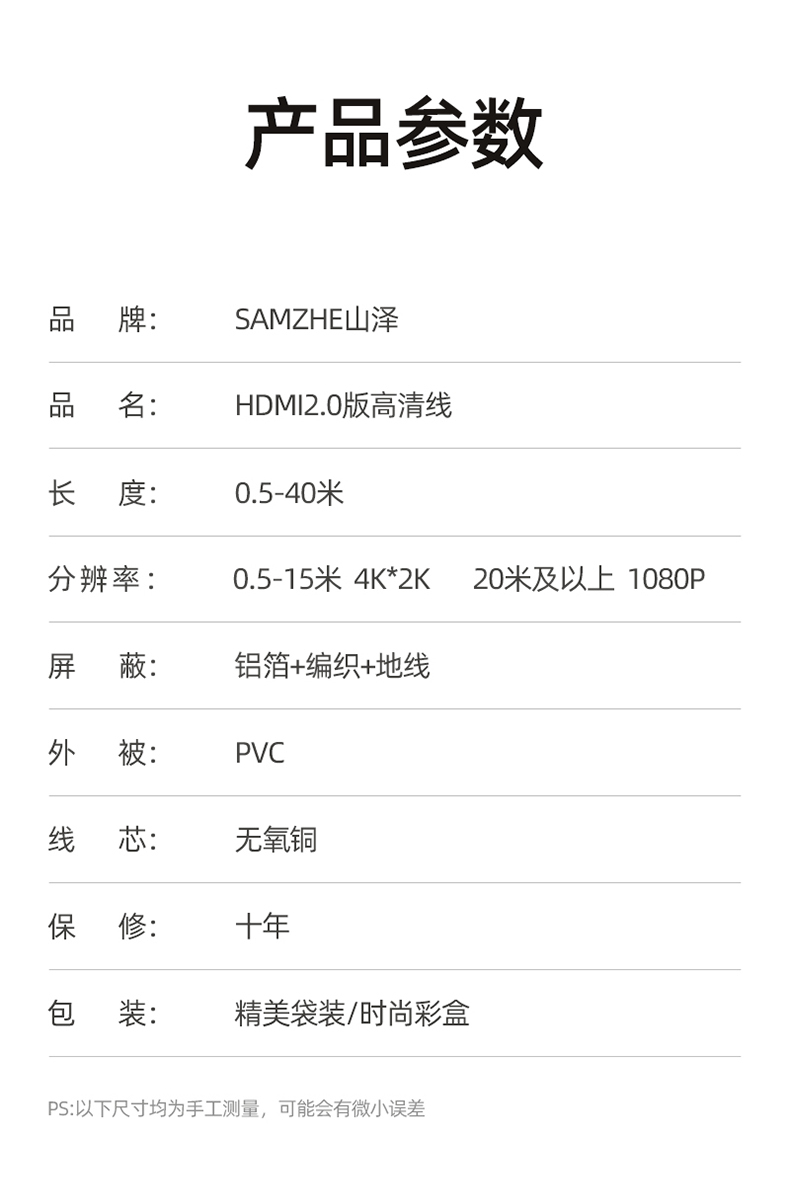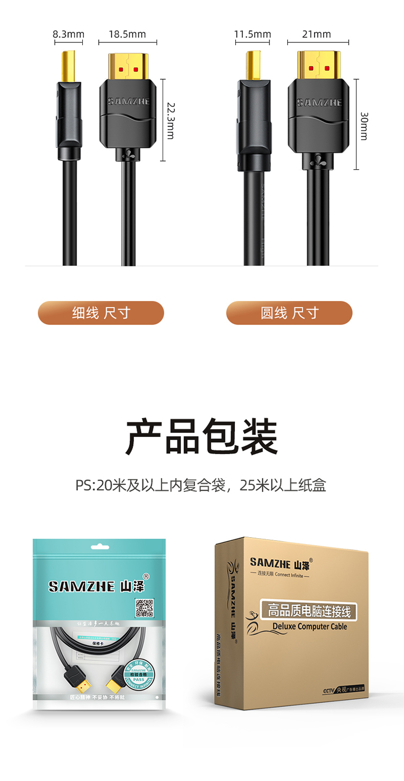 山泽hdmi线高清线2.0显示器连接电脑电视机顶盒4k投影仪数据加长