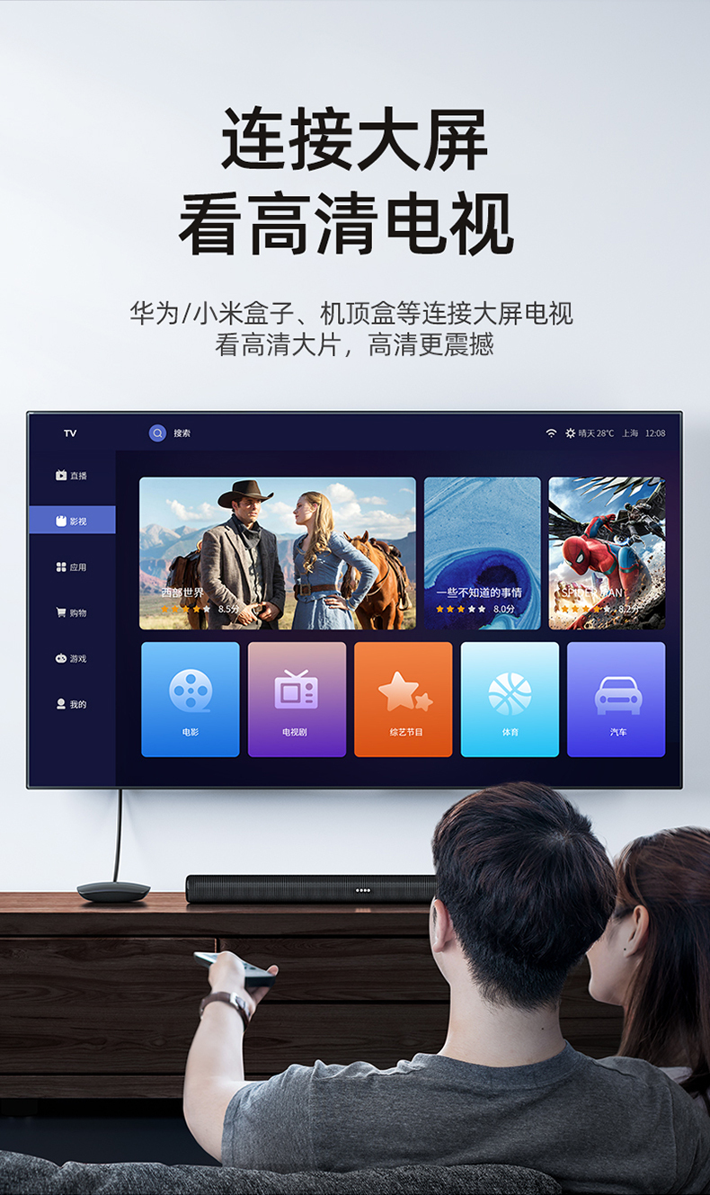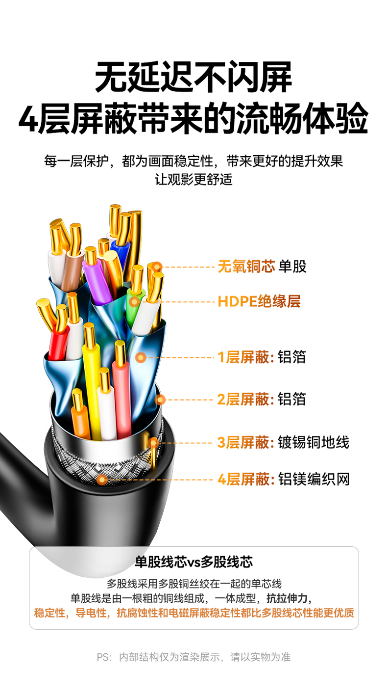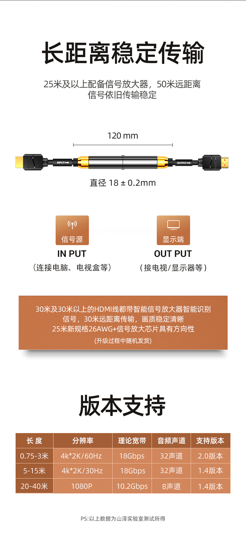 山泽hdmi线高清线2.0显示器连接电脑电视机顶盒4k投影仪数据加长