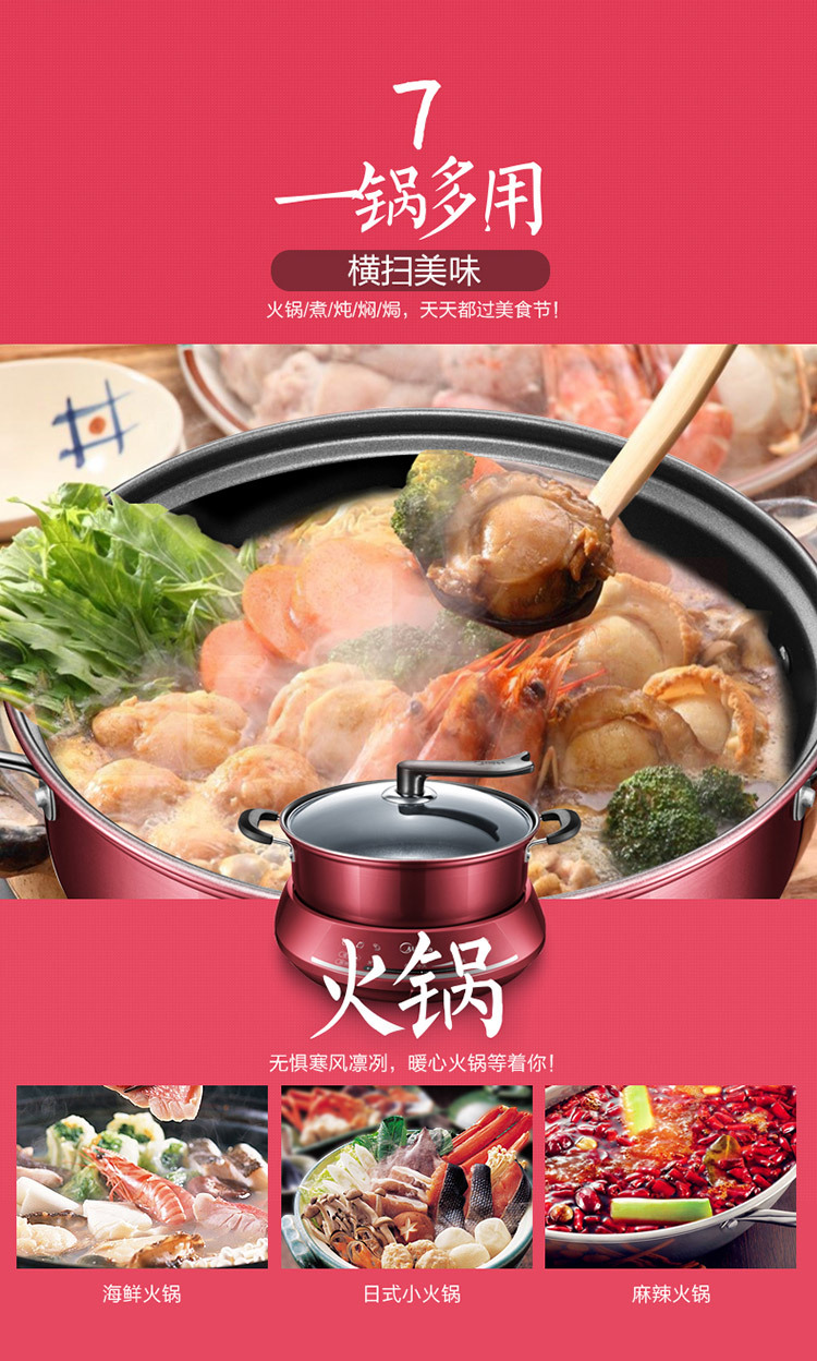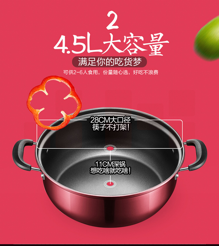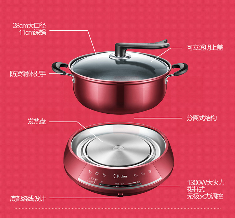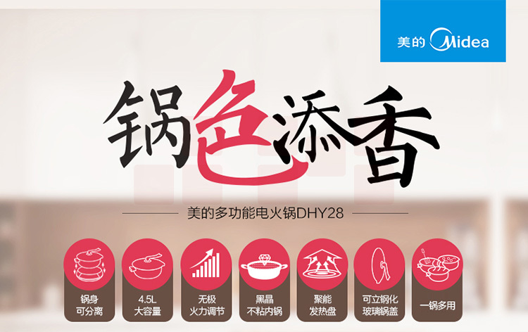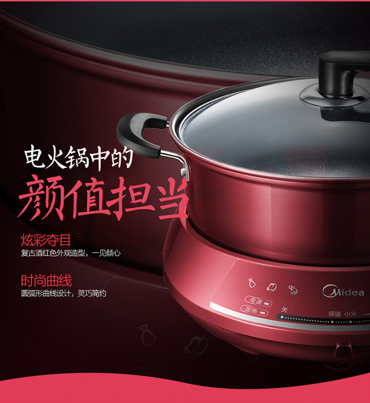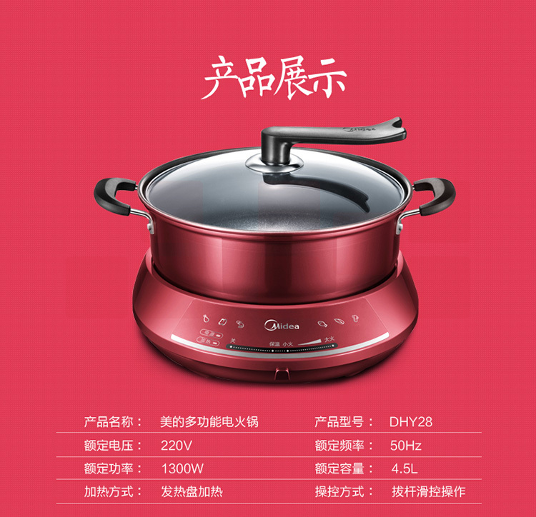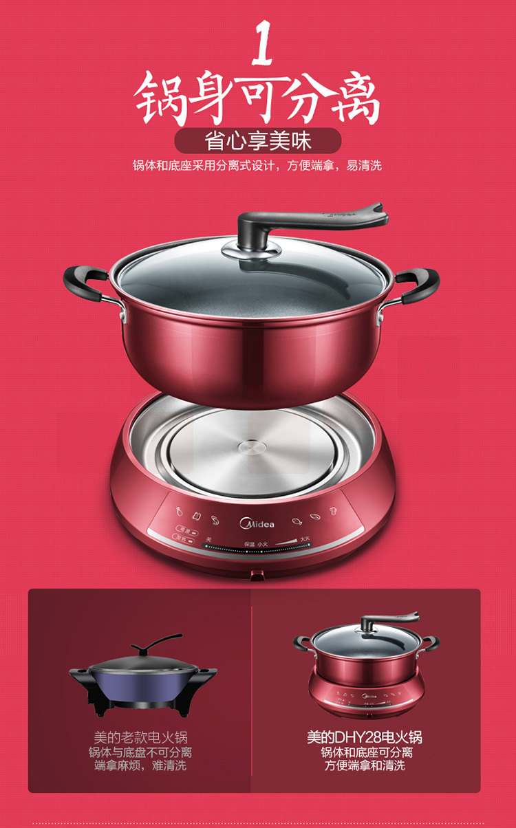 美的(Midea)电火锅大容量 分体式家用多功能电热锅 DHY28