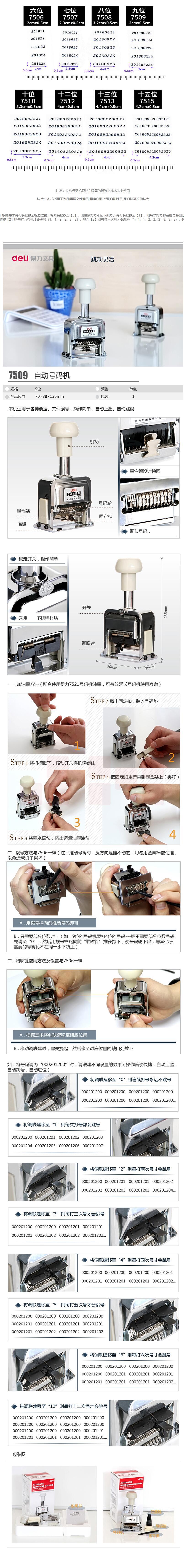 得力 6位自动号码机 页码机 日期可调时间数字印章7506
