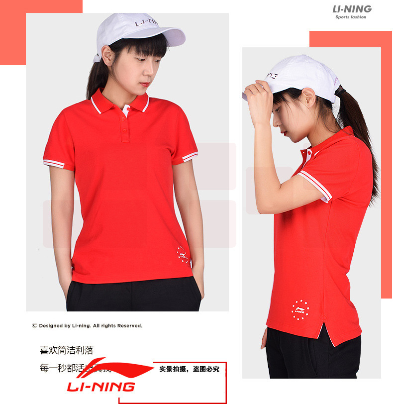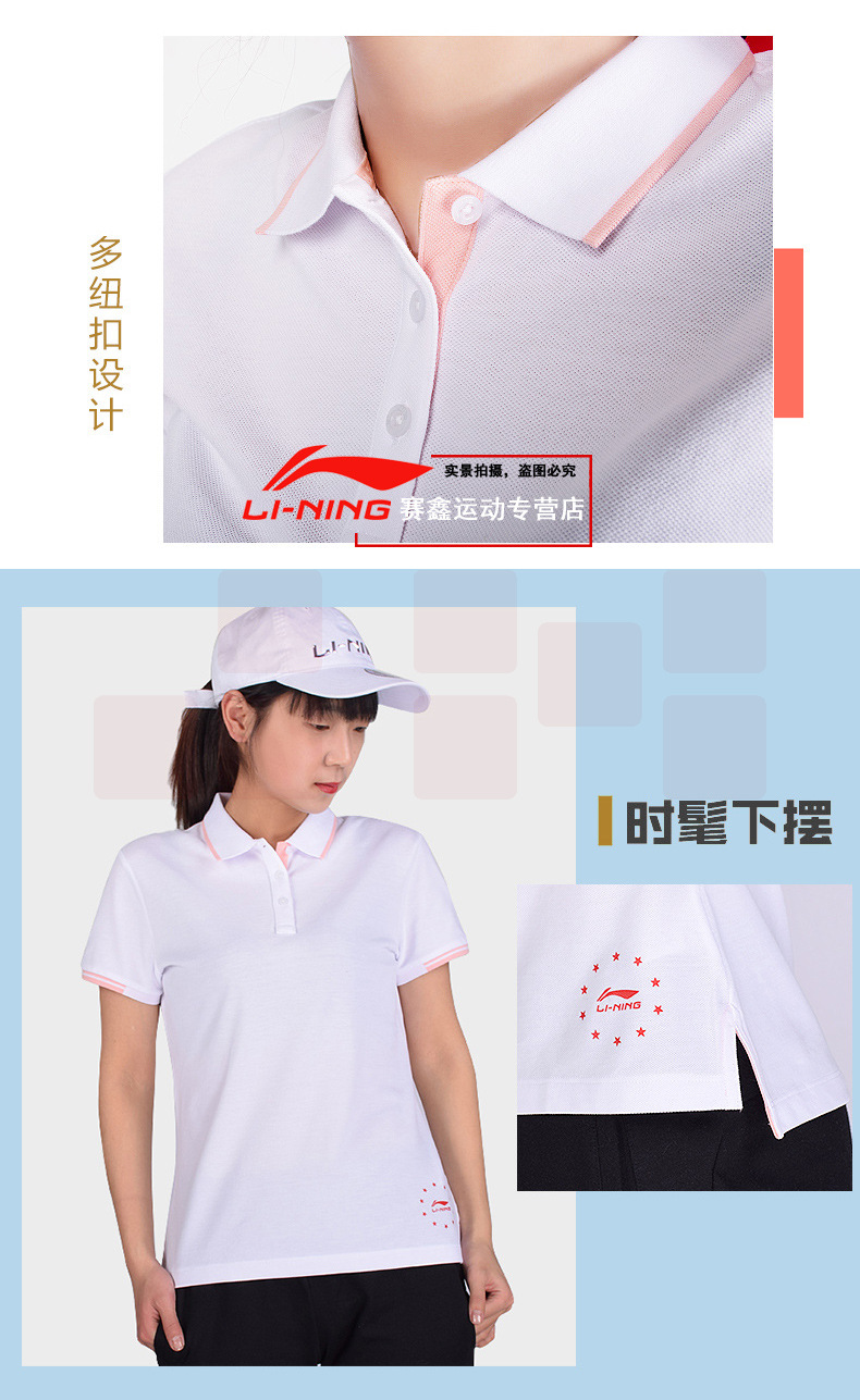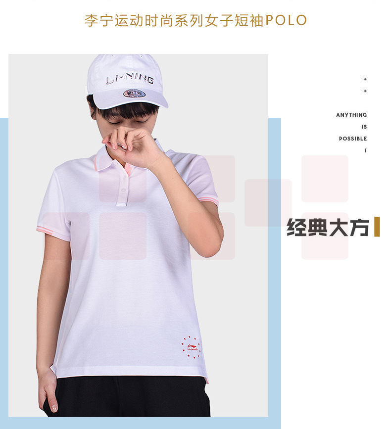 李宁运动POLO衫 休闲短袖翻领 棉质上衣 APLP034-2浅烟粉