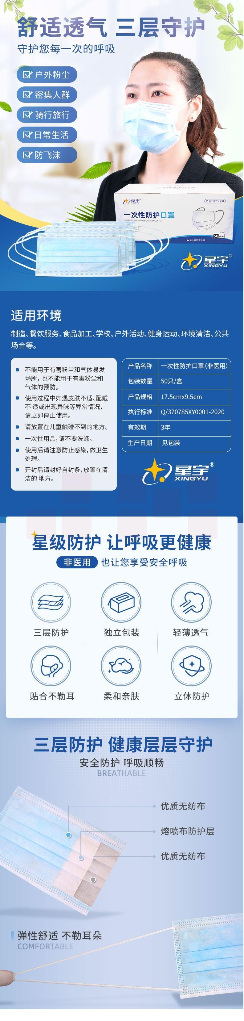 星宇 一次性防护口罩 三层含熔喷布(50只盒)