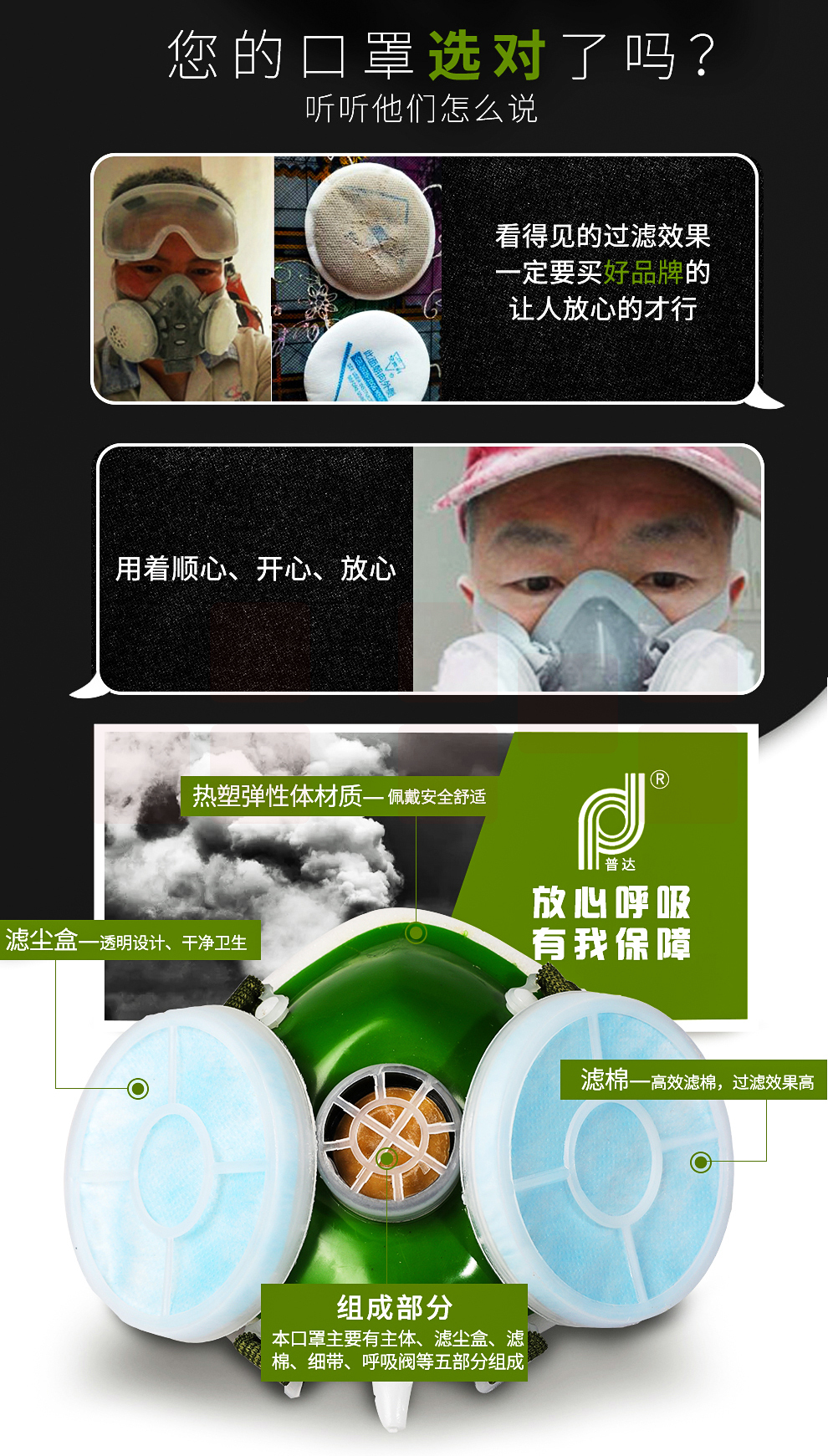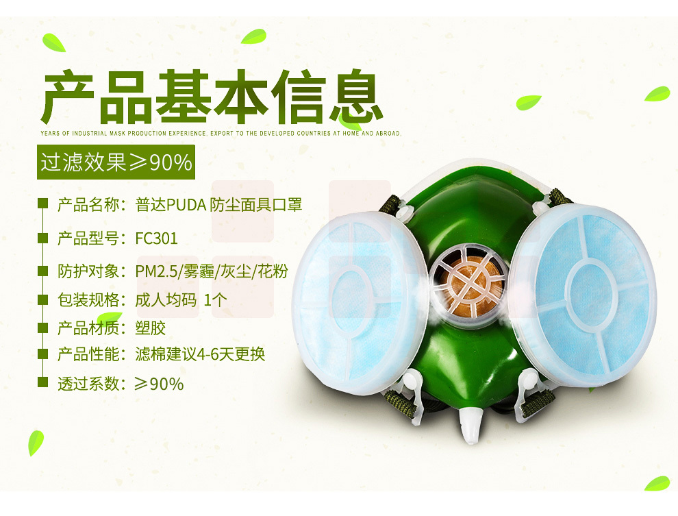 普达(PUDA) 301防尘口罩具呼吸阀透气防工业灰粉尘打磨电焊装修煤矿面罩80/箱