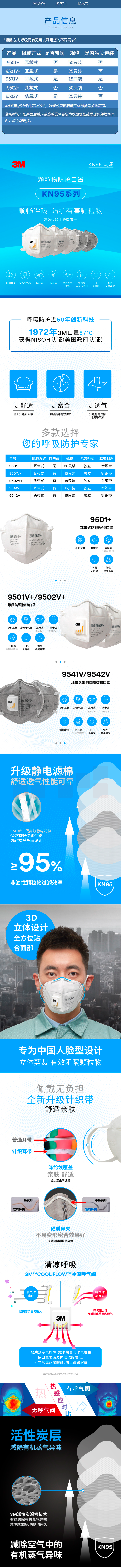 3M KN95口罩9502V+ 防粉尘雾霾颗粒物呼吸阀 头戴式 25只