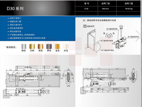 敦豪斯(DORRENHAOS)敦豪斯暗藏闭门器 隐藏式闭门器 隐形门闭门器D30定位(不含安装)