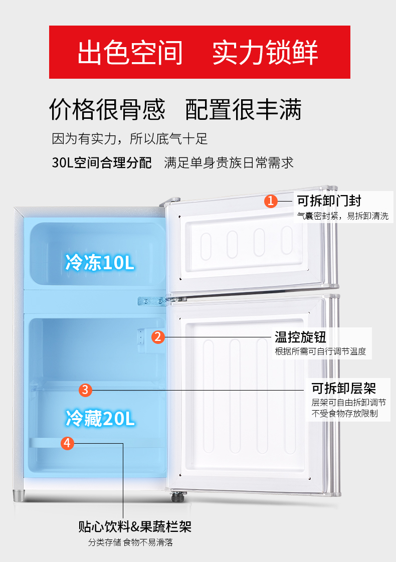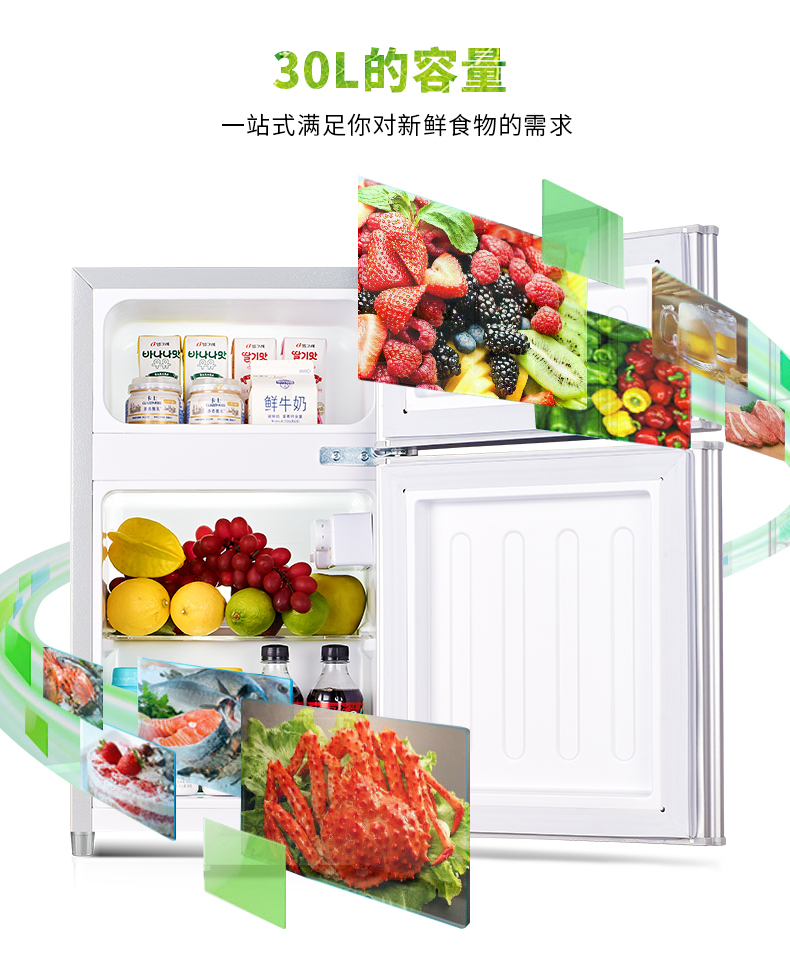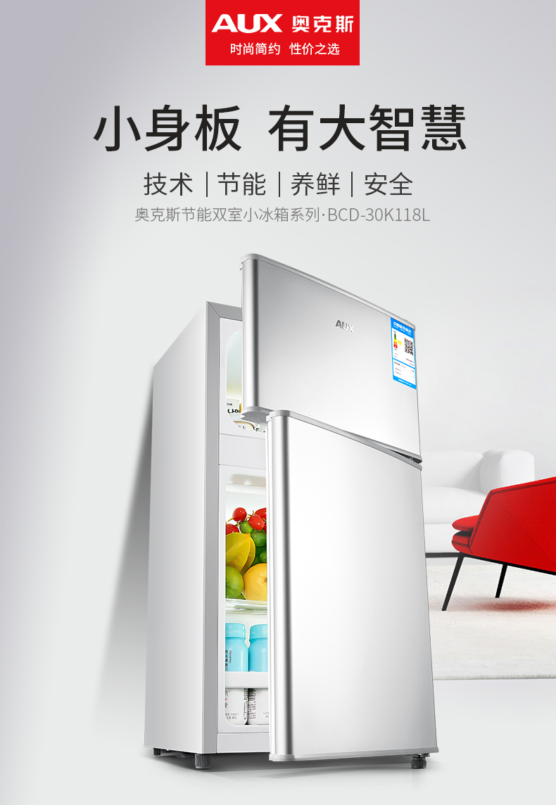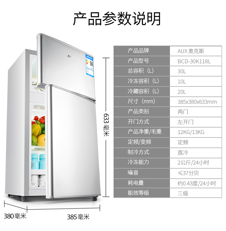 奥克斯小冰箱家用30升双门迷你小型冰箱冷冻冷藏宿舍租房节能省电