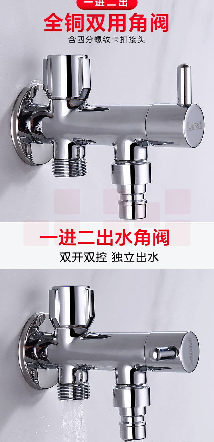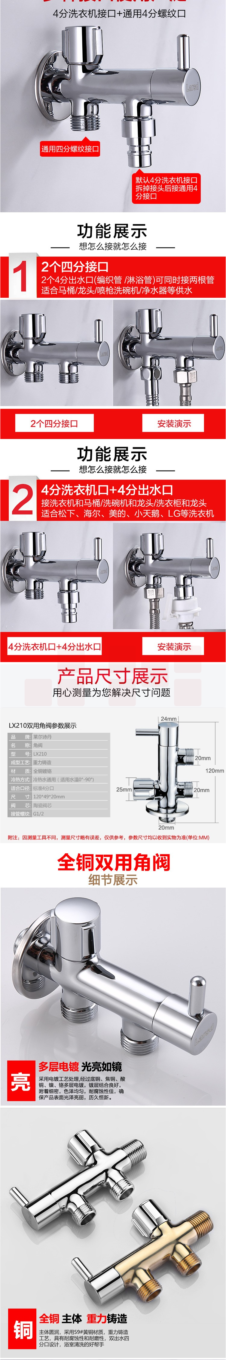 双用角阀 三通角阀 一进二出+4分洗衣机水嘴