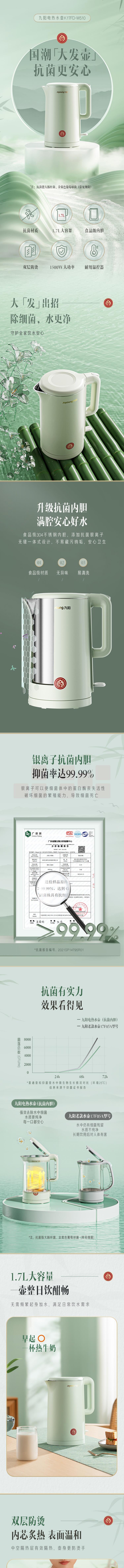 九阳 K17FD-W510 热水壶烧水壶电水壶1.7L 安心材质 无缝内胆 双层壶体 家用开水壶