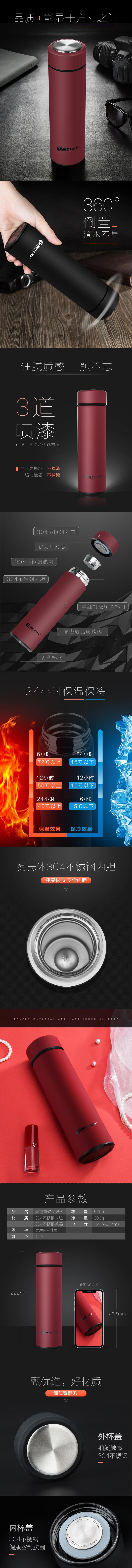 天喜 红色500ml 保温杯 真空304不锈钢内胆 带茶漏滤网