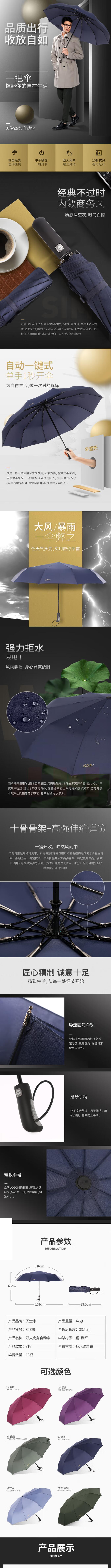 天堂伞 晴雨伞10骨一键开收全自动雨伞男女 藏青 58CM*10骨