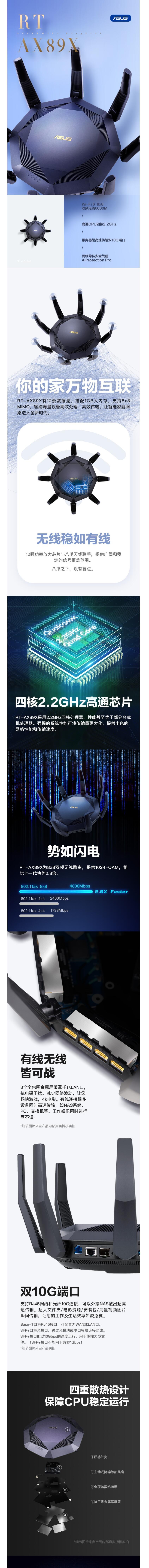 华硕 RT-AX89X高通四核 双10G口 全千兆WiFi6路由器