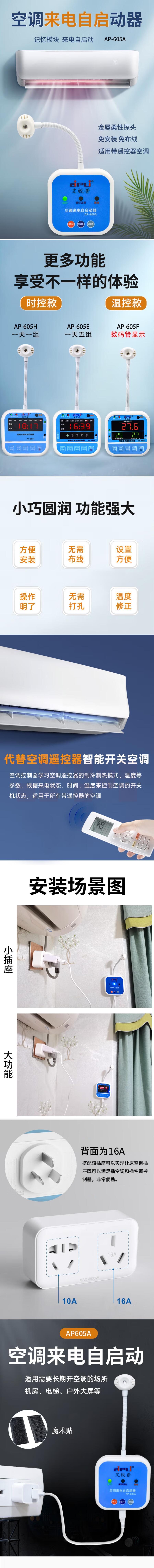 智能空调来电自动启动器定温开关控制器空调伴侣温度控制开关机 AP-605F温控款