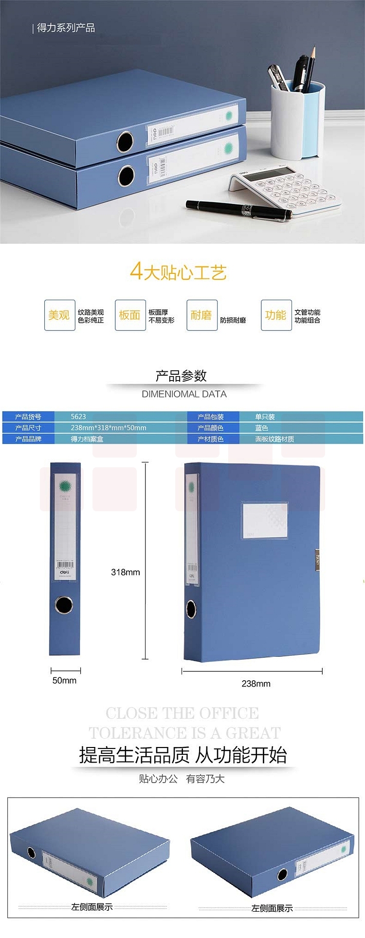得力 5623 A4档案盒资料盒 黑色 238*318*50mm