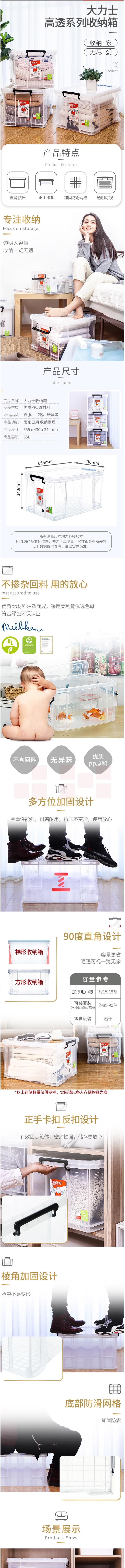 禧天龙 X-6170 收纳箱 整理箱 65L 透明色储物箱 (655*430*340mm)