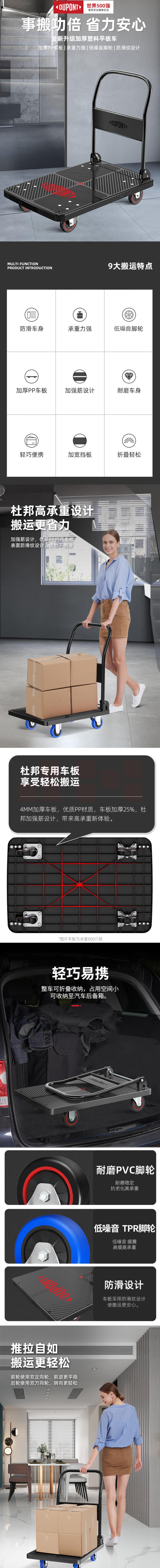 杜邦 90*60 承重800斤平板小推车折叠手拉货车塑料搬运拉杆拖车
