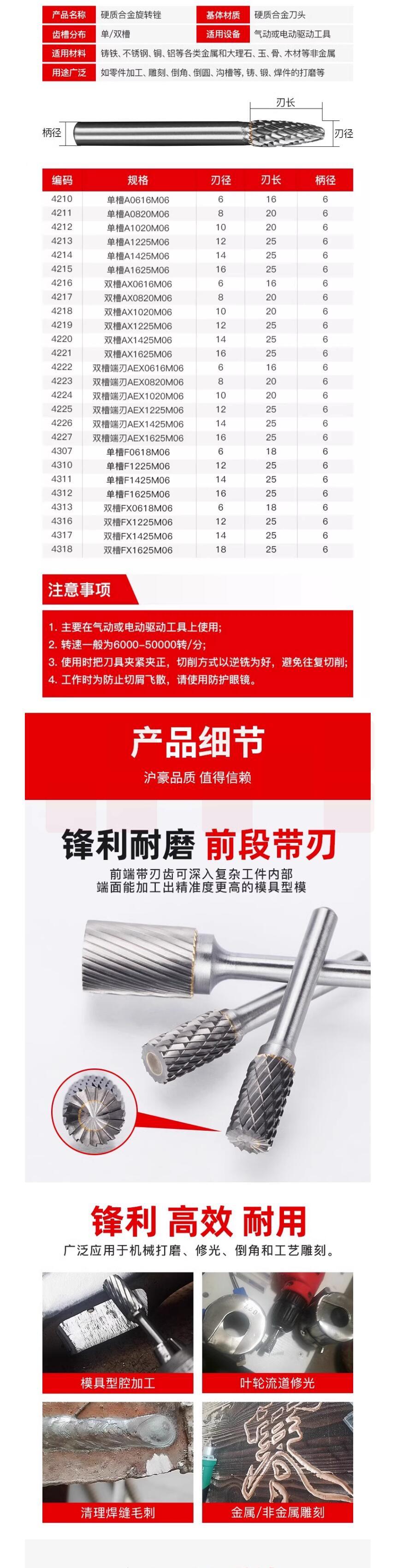 合金旋转锉内打磨钻头 双槽 FX0613 货号:JC