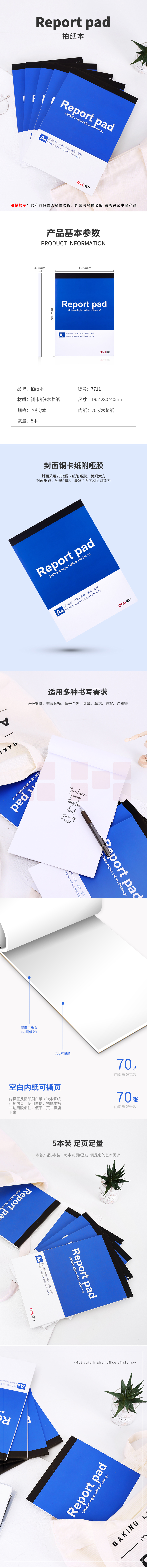得力 便签本 信签本 便条本 空白本 笔记本 日记本 涂鸦本 画画本 7711(A4) 单本装195*279mm