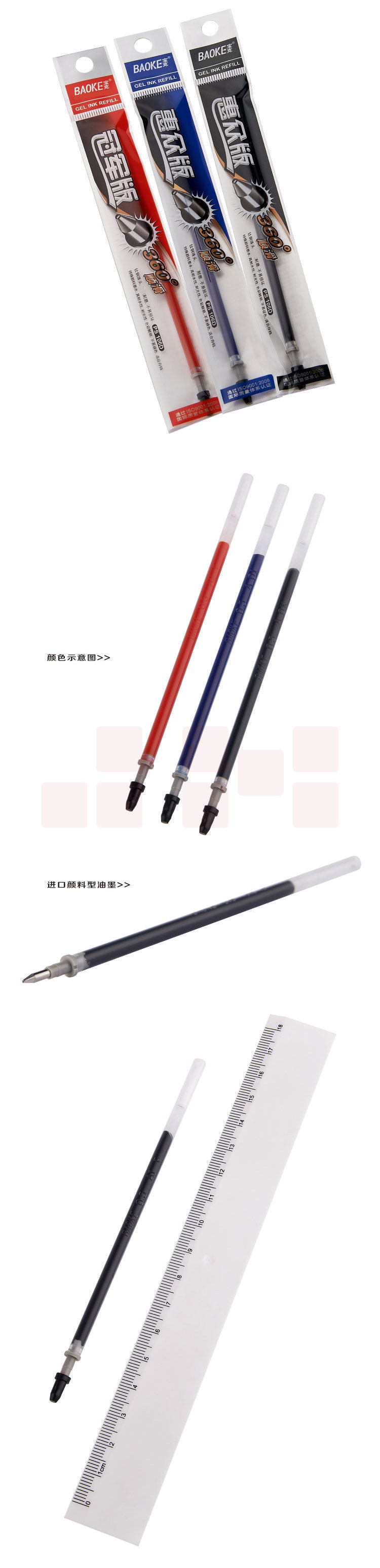 宝克(BAOKE)PS106D 笔芯中性笔芯 替芯 0.5mm 顺滑钛钢珠头签字笔芯 20支/盒
