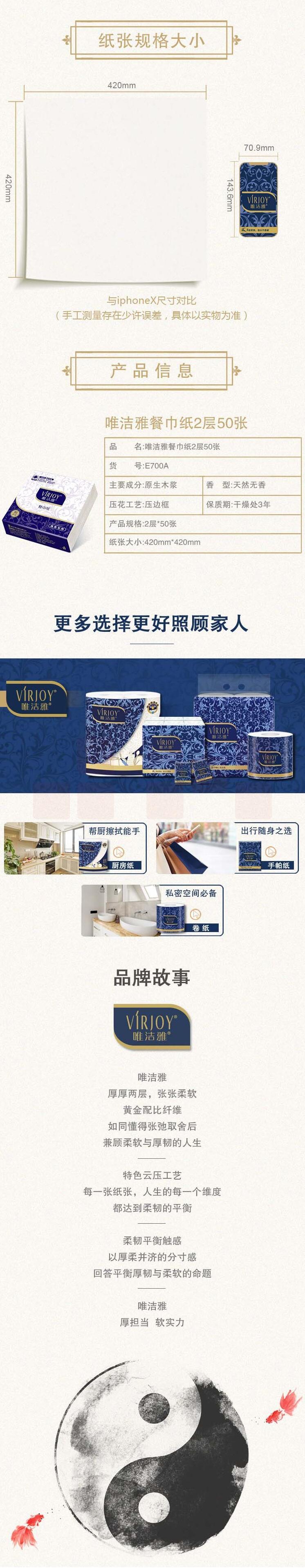 唯洁雅 双层餐巾纸50张/包*36包/箱 420mm*420mm E700A