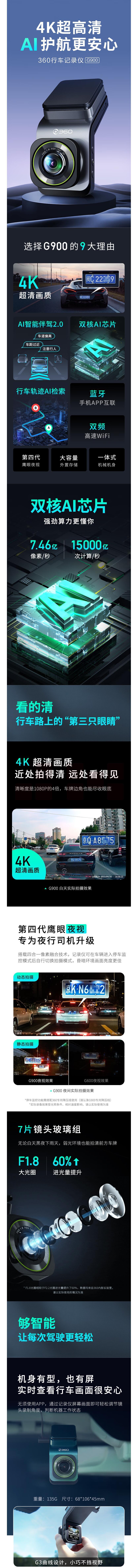360行车记录仪高清 G900 4K超高清 双频wifi+256G卡+降压线 货号:JC