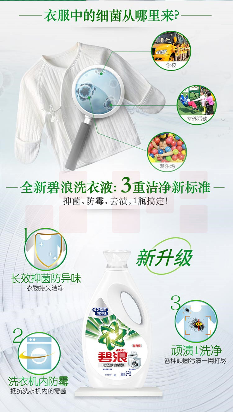 碧浪 机洗洗衣液 2kg抑菌高效除螨草本清新香