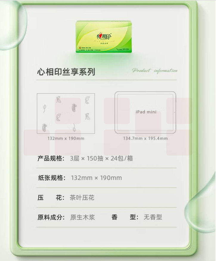 心相印抽纸 茶语丝享系列3层150抽面巾纸 S码 132mm*190mm