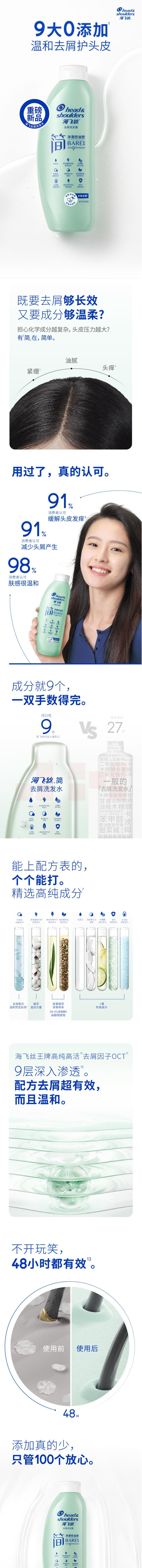 海飞丝简系列温和去屑洗发露头皮护理净澈控油型400G