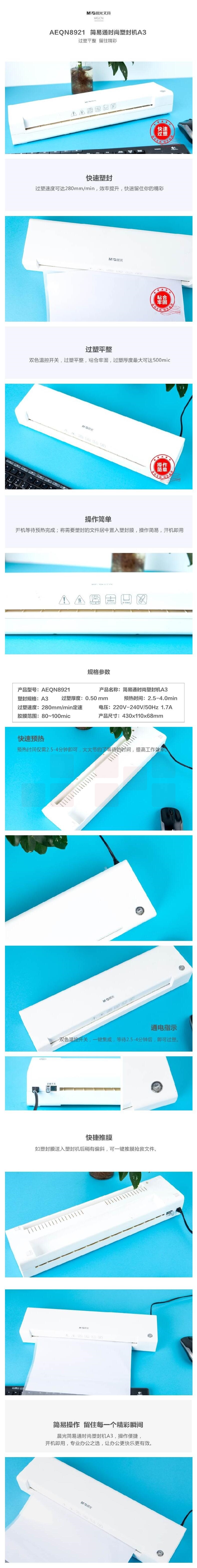 晨光 A3塑封机 简易通系列时尚过塑机 AEQN8921