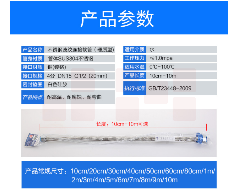 不锈钢波纹管 冷热水管 3米 货号:YC