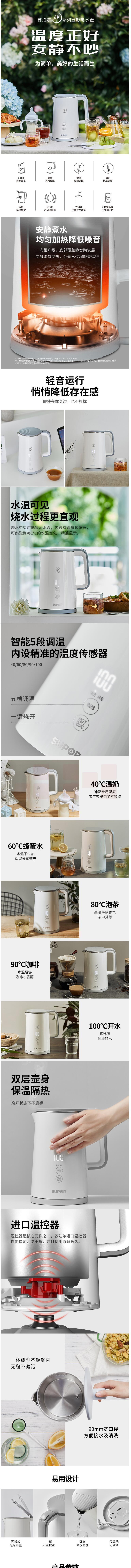苏泊尔(SUPOR) SW-15S65 煮水 壶身显温 触控调温 304不锈钢 双层防烫电水壶