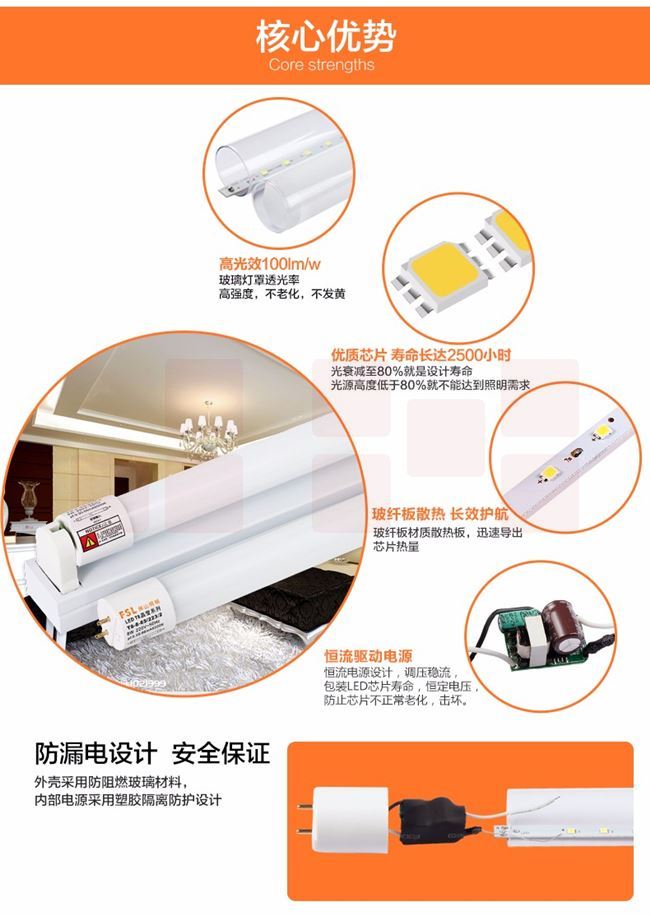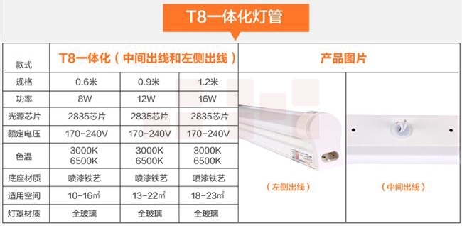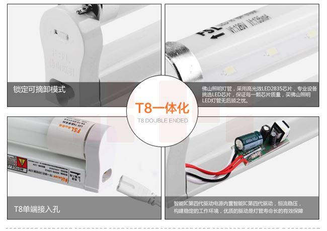佛山 LED T8/16W 双端输入可串联 1.2米/6500K