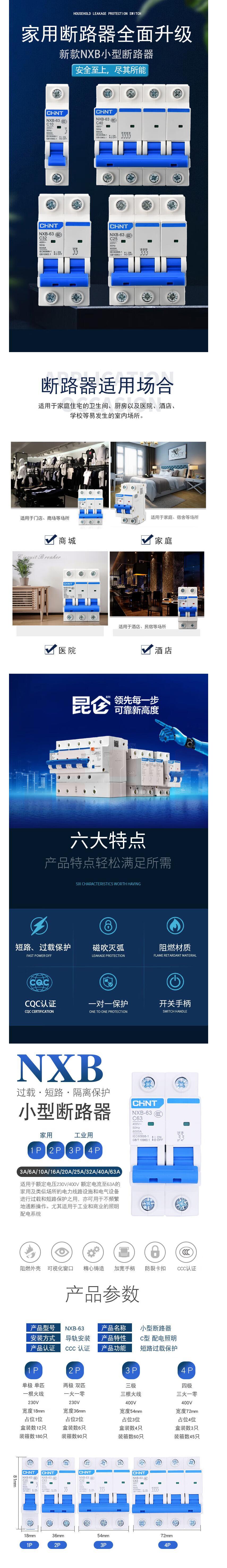 正泰 NXB-63-3P-C63 空气开关 过载空气开关 3P 63A