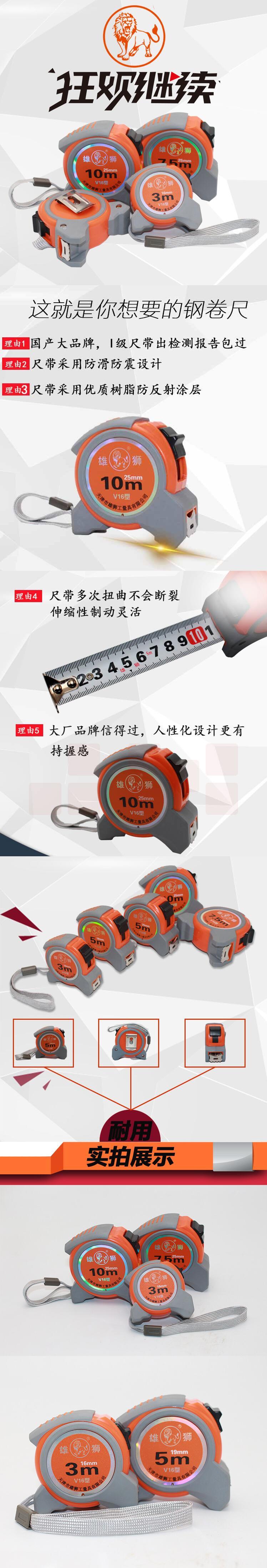 雄狮 5米盒尺(V16型)盒尺钢卷尺公制盒尺尺子