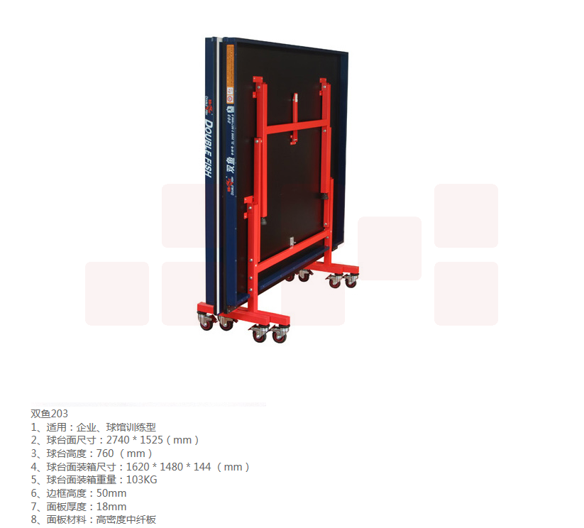 双鱼 乒乓球台 203型室内标准可移动训练与比赛家用 乒乓桌