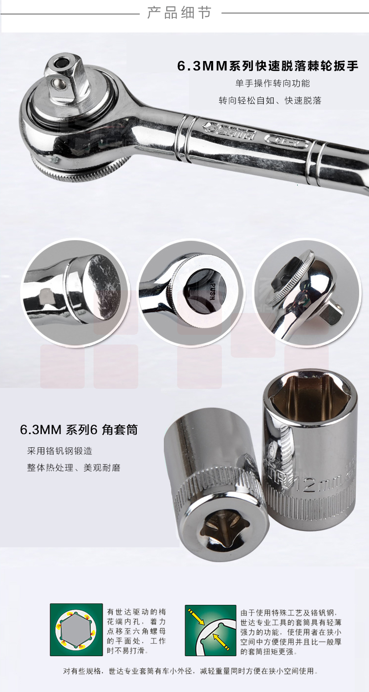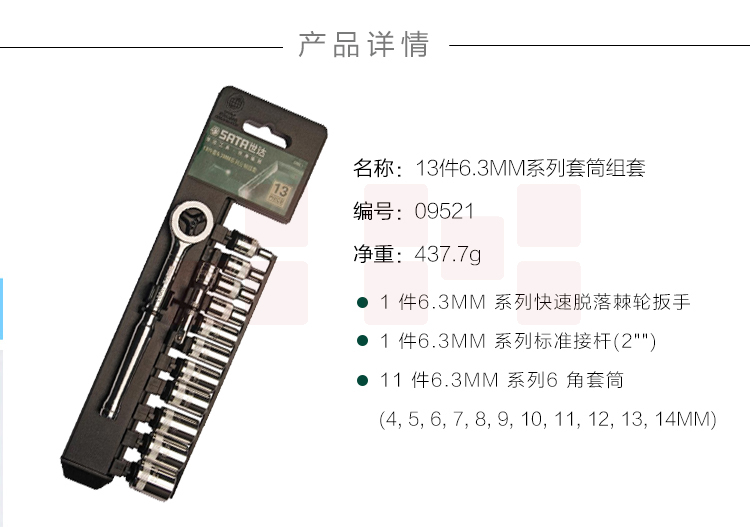世达(SATA)13件6.3MM系列套筒组套货号09521